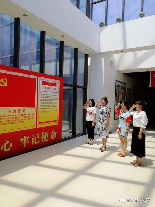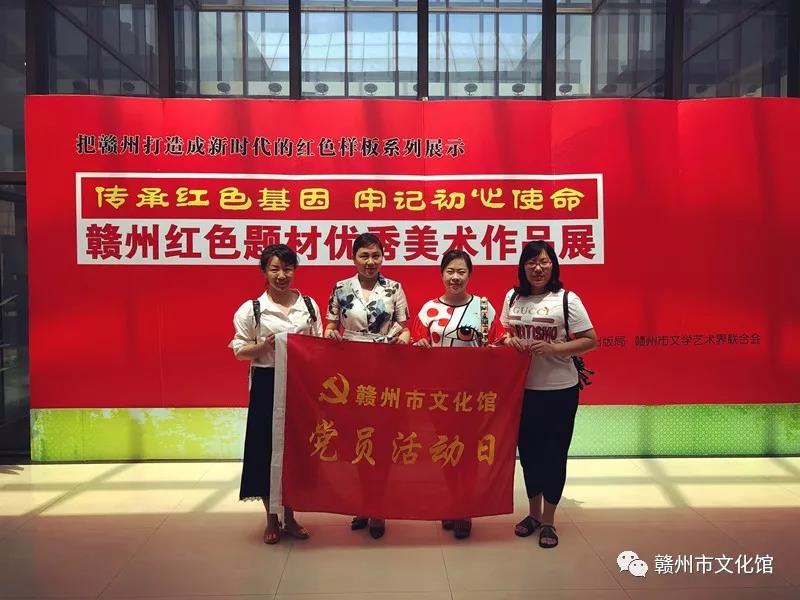 5月16日上午,赣州市文化馆党支部组织在单位党员干部前往市美术馆开展党日活动暨参观学习由中共赣州市委宣传部、市文广新局、市文联主办,赣州美术馆、市美协承办的“传承红色基因、牢记初心使命——赣州红色题材优秀美术作品展”。在现场,党员们先是在党支部书记李媛媛同志的带领下认真观看了各展览作品;随后一起重温了入党誓词。活动结束后,党员们感言:今天的活动非常有意义,作为党员,一定要牢记初心,不辱使命,立足岗位,推进文化事业的进一步繁荣发展。