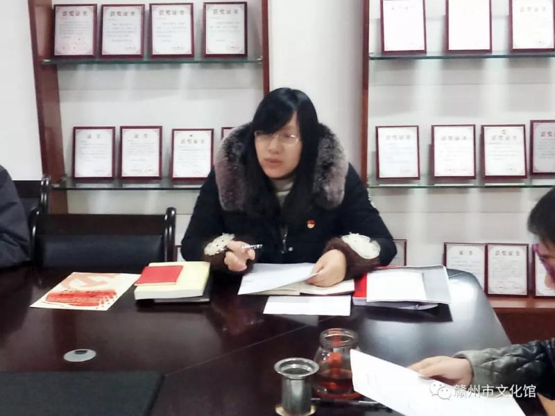 2月18日,赣州市文化馆组织全体在职党员在会议室开展党日活动。活动一共有五个议程: