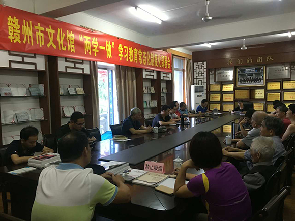 6月22日下午,赣州市文化馆召开了“两学一做”学习教育常态化制度化工作部署会,全馆在职和离退休党员干部参加了会议。会上,馆党支部纪检委员、副馆长陈席荣同志传达了市局会议精神并对我馆“两学一做”学习教育常态化制度化工作进行了部署。馆党支部书记、馆长李媛媛同志就如何推进馆“两学一做”学习教育常态化制度化提出了明确要求,并要求参会人员充分认识推进“两学一做”学习教育常态化制度化的重大意义,根据文化馆实际,扎实完成规定动作,出色做好自选动作。同时,要求党员干部在工作中埋头苦干、真抓实干,争当排头兵、争创一等工作。