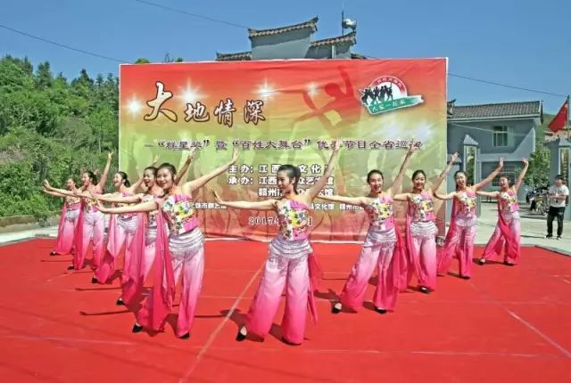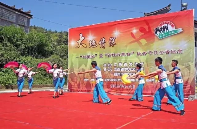 4月28日下午,根据文化部统一安排,由江西省文化厅主办,江西省群众艺术馆、赣州市群众艺术馆承办的“大地情深——‘群星奖’和‘百姓大舞台’”优秀节目全省巡演首场演出在赣州市宁都县田埠乡东龙村隆重举行。 海拔700多米的小山村东龙村,位于客家重要发源地的江西南部,是个聚族而居的古村落,全村处于高山盆地之中,是江西省“十三五”贫困村,也是江西省文化厅定点帮扶村。