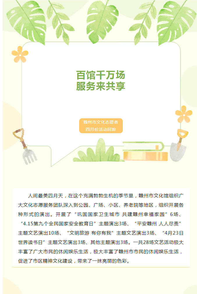 百馆千万场 服务来共享丨赣州市文化志愿者四月份活动回眸