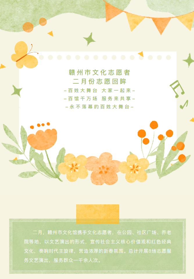 ※ 特别声明:本公众号仅用于赣州市文化馆公共文化服务及群众文化艺术普及,不用于任何商业用途。所转载文章及图片、视频、音频等版权均属原作者。如有侵权,请及时与本公众号联系。