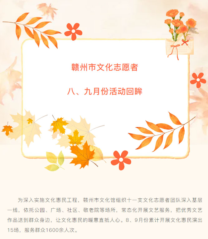 百馆万场 赣鄱共享 | 赣州市文化志愿者八、九月份活动回眸