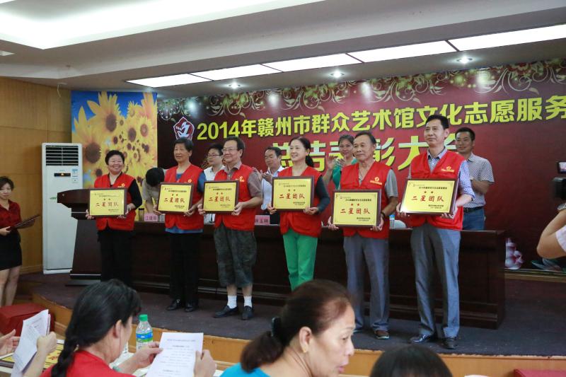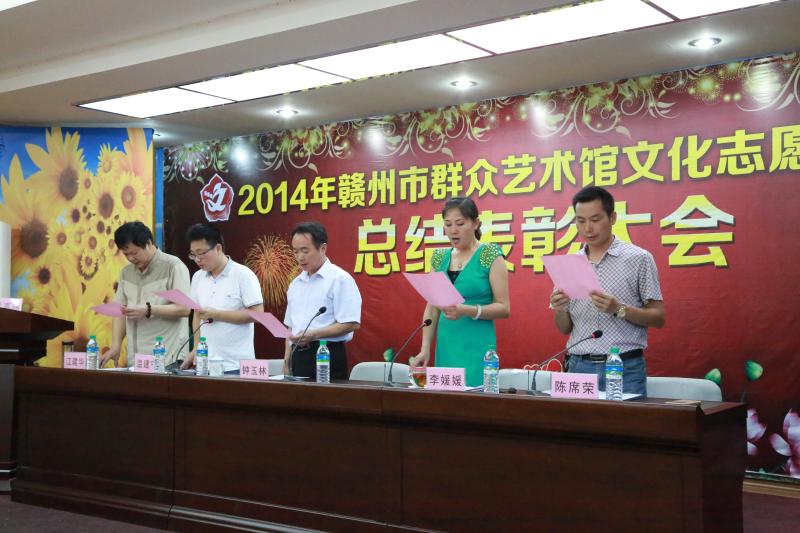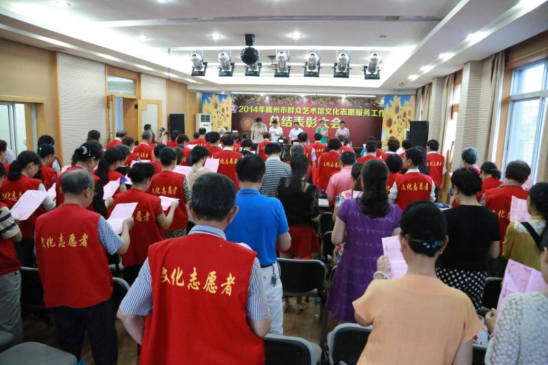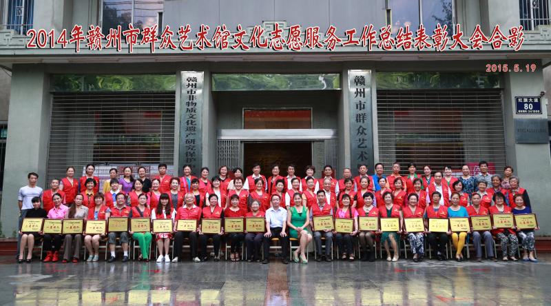 2015年5月19日上午,赣州市群众艺术馆文化志愿者2014年工作总结表彰大会在群众艺术馆四楼多功能厅举行,75名身穿“红马甲”的文化志愿者参加了会议。大会分别为21个受表彰的文化志愿服务工作先进集体和58位先进个人颁发了奖牌和奖状。受表彰的文化志愿服务工作先进集体和先进个人代表作了典型发言。