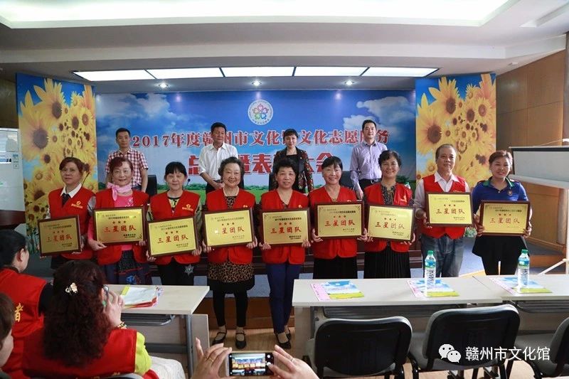 大会由市文化馆副馆长陈席荣主持。副馆长肖凡宣读了2017年度文化志愿服务工作先进团队和先进个人名单。大会表彰了9个三星级先进团队、7个二星级先进团队、15个一星级先进团队和62个先进个人。先进团队代表振华艺术团团长廖华陵和先进个人代表心连心艺术团团长肖秀华在大会上作经验发言。