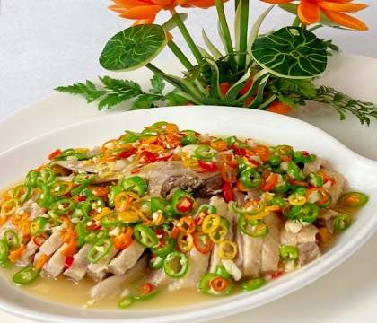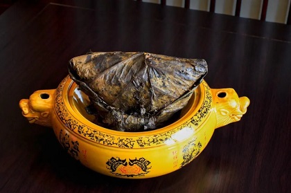 荷包胙又名状元菜,是江西客家传统名菜,因用荷叶包扎得名。相传乾隆年间,南安府戴衢亨高中状元后摆宴,厨师以荷叶将料理后的猪肉包成 “状元帽” 形蒸熟,成此色泽浅黄、香纯不腻的菜肴。它是南康名品,享誉盛名,曾获中央电视台等多家媒体报道,是当地酒席必备菜,也是…