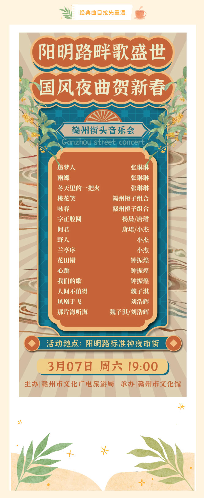 赣文轻骑兵|赣州新春国风音乐会延期重启!3月7日晚阳明路开唱,现场还有惊喜抽奖~
