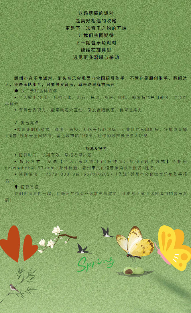 ※ 特别声明:本公众号仅用于赣州市文化馆公共文化服务及群众文化艺术普及,不用于任何商业用途。所转载文章及图片、视频、音频等版权均属原作者。如有侵权,请及时与本公众号联系。