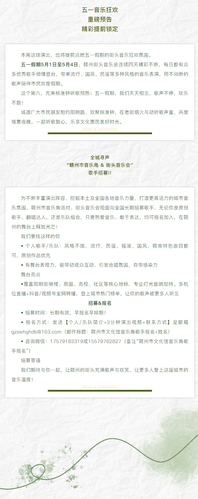 时间:2026-04-24点击量:来源:赣州市文化馆