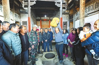 “嘿哟嘿,嘿哟嘿……”年关将至,在宁都县固厚乡明坑村城江组的祠堂内热闹非凡,一场传统的黄粸制作活动在此举行。伴随着村民们一声声吆喝声,游客的欢呼声,以及铿锵有力的木槌捶打声,黄澄澄的大禾米饭在石臼中,逐渐化为细腻且劲道十足的粸团,香气四溢。