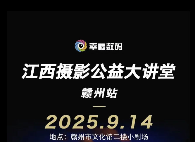江西摄影公益大讲堂(赣州站)即将开讲,精彩不容错过!各位摄影爱好者注意啦!一场干货满满的摄影讲座即将在赣州拉开帷幕!