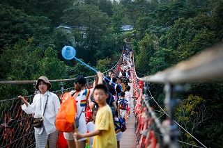暑假里,我去了国家四A级景区,江西省五A级乡村旅游点——大余县的丫山玩。买好票,取了景点路线图,我们直奔最好玩的“A哆乡村”而去。要去到那里,必须得经过一座桥——“A哆啦桥”。“A哆啦桥”是一座吊桥,有点像斜拉桥。它用钢筋和绳索吊在两座山崖之间,有二三百米…