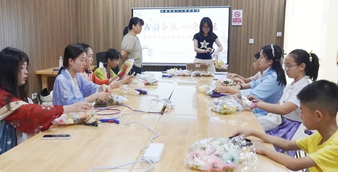 “今世簪花,世世漂亮,一年簪花,一生无忧”,为弘扬我国传统非遗文化,带领市民亲身制作和体验簪花文化的底蕴,8月7日时值今年立秋节气,赣州市文化馆“古韵今风 一念簪花”簪花头饰DIY公益活动在三楼公教室成功举行。
