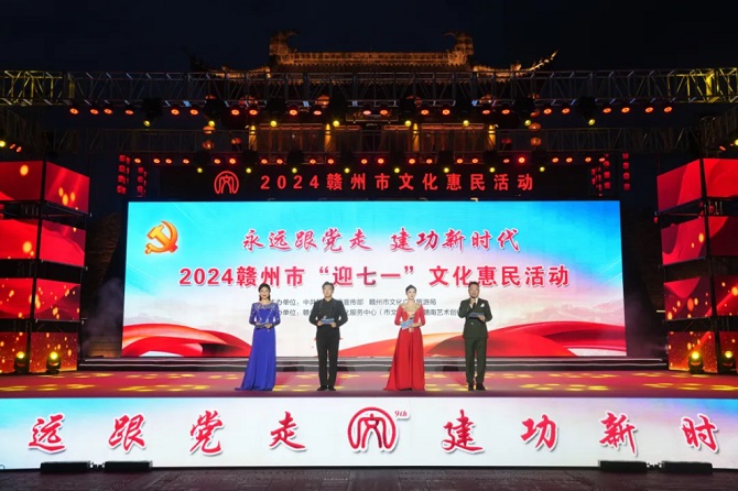 为庆祝中国共产党成立103周年,6月30日晚,“永远跟党走 建功新时代”2024赣州市“迎七一”文化惠民活动在赣州市江南历史文化街区军门楼广场精彩上演。江西省文旅厅党组成员、副厅长陈晓平,赣州市委常委、市委宣传部部长钟小武,江西省文旅厅艺术处处长叶蓉,赣州市文广…