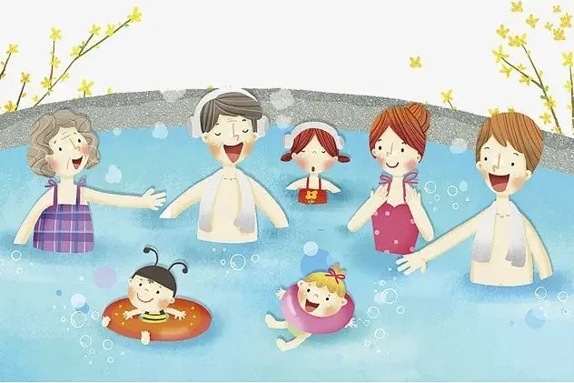 寒假里,妈妈带我和小伙伴们到安远泡了一回温泉。到了目的地,我只花了一分钟的时间,就在更衣室换好了衣服,直奔温泉池。我们泡的第一个温泉池是健身池。那里有很多很多器材,有像家里洗澡一样的花洒,有喷出水来像瀑布一样的蘑菇喷头,还有靠背是椅子的按摩喷泉呢……光…