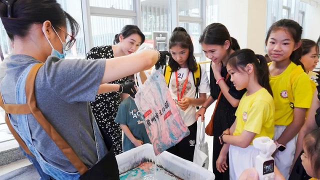 微微石榴籽,颗颗团结心。6月1日,赣州市文化馆一楼大厅热闹非凡,来自新疆阿克陶的学生们与赣州的30组家庭在这里欢聚一堂,共同度过了一个难忘的、快乐的“六一”儿童节,大家一起参与学习如何制作漂漆帆布包。通过交流互动,让创意和友谊在帆布上绽放。