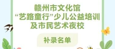 赣州市文化馆“艺路童行”少儿公益培训及市民艺术夜校补录名单公布啦!