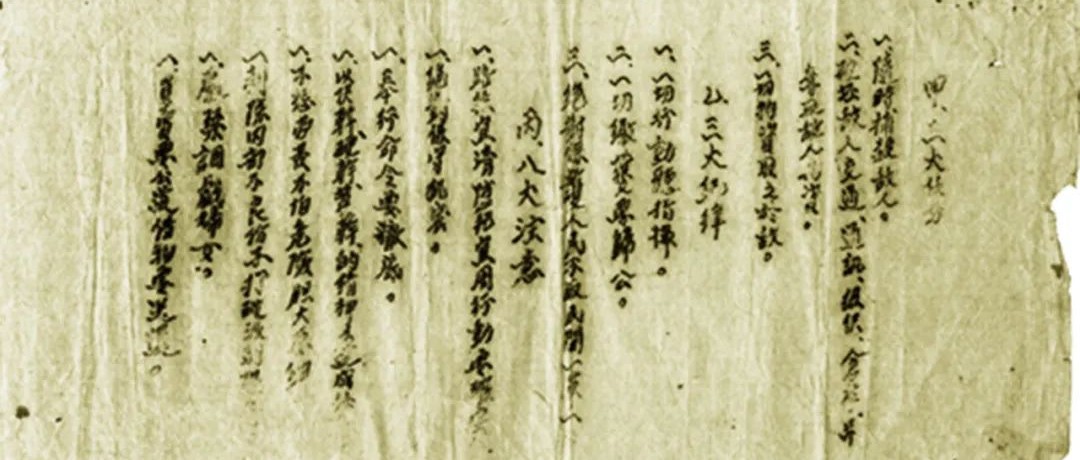发现这件十分珍贵的“甲、三大任务,乙、三大纪律,丙、八大注意”纸质手刻油印毛边纸宣传单事情经过:一次偶然机会看到朋友处有一件皱巴巴的纸质品,展开后我便发现是一张“宣传单”,据他说是在一堆废旧书藉中发现的,内容是是“甲、三大任务,乙、三大纪律,丙、八大注…