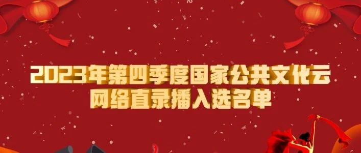 为贯彻落实《“十四五”公共文化服务体系建设规划》,推动国家公共文化云网络直录播高质量发展,深化供给侧结构性改革,提升人民群众文化获得感、幸福感,文化和旅游部全国公共文化发展中心组织开展了2023年第四季度国家公共文化云网络直录播遴选工作,经过各地报送和审核…