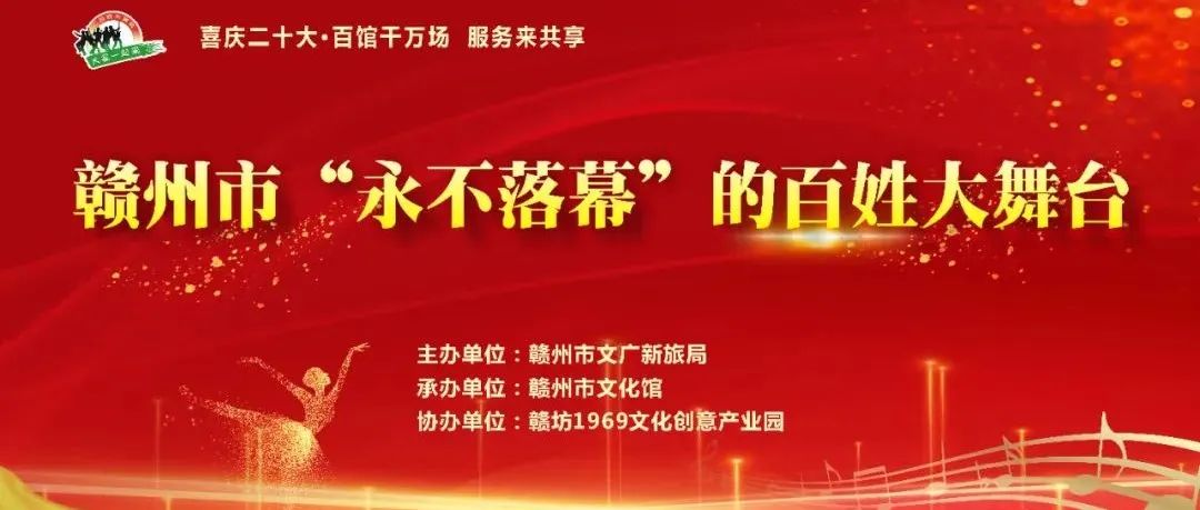 为学习宣传贯彻党的二十大精神,丰富群众的精神文化生活,传递社会正能量,展现赣州人民奋进向上的时代风貌,推进文化自强自信,进一步增强广大群众的文化幸福感、获得感,由赣州市文广新旅局主办,赣州市文化馆承办,赣坊1969文化创意产业园协办的4场赣州市“永不落幕”…