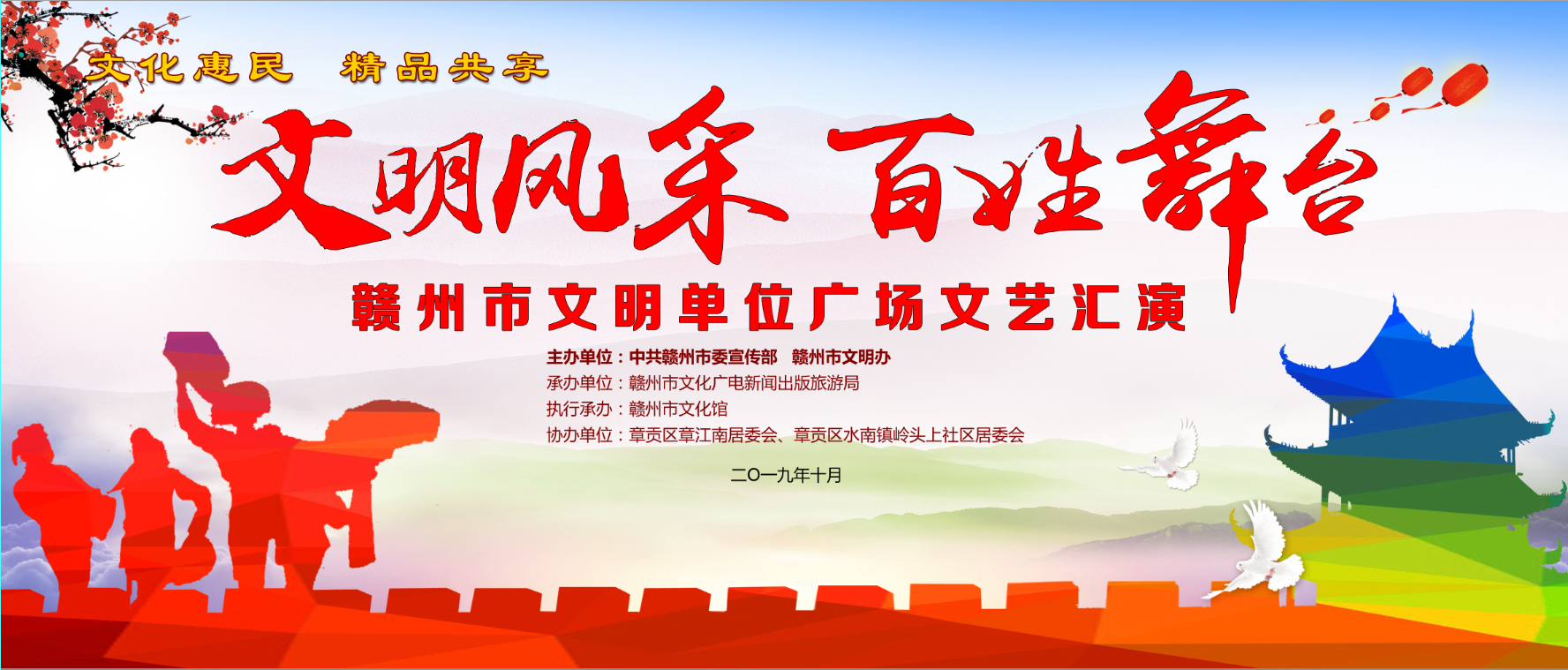 为推动社会主义核心价值观落细落小落实,进一步丰富群众精神文化生活,充分展现各级文明单位风采,深化我市文明城市建设,由市委宣传部、市文明办主办,市文广新旅局承办, 市文化馆执行承办,章贡区章江南居委会、水南镇岭头上社区居委会协办的赣州市“文明风采,百姓舞台…
