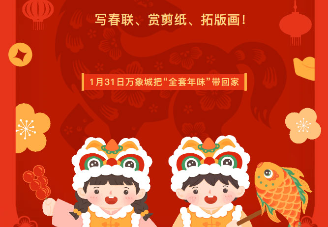 活动预告 | 写春联、赏剪纸、拓版画!1月31日万象城把“全套年味”带回家