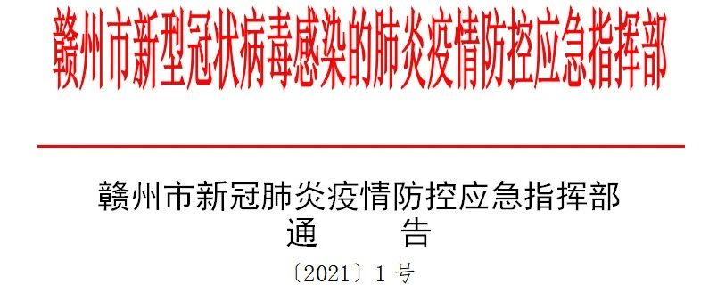 为做好春节期间的疫情防控工作,最大限度减少人员流动,降低新冠肺炎疫情传播风险,维护全市人民群众生命健康,保障全市人民和市域外留赣州过年人员过上一个安静祥和的春节,经市疫情防控应急指挥部研究,现将2021年春节期间有关事项通告如下:一、全市党员干部、机关国有…