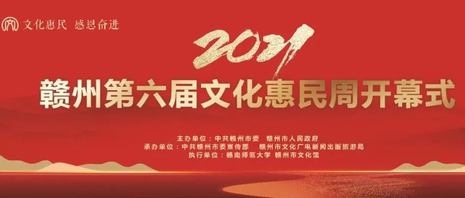 根据江西省文化强省建设推进大会系列活动赣州市筹备工作领导小组办公室安排,2021赣州第六届文化惠民周系列群文活动演出及直播延期一天举行。具体活动详情更改如下: