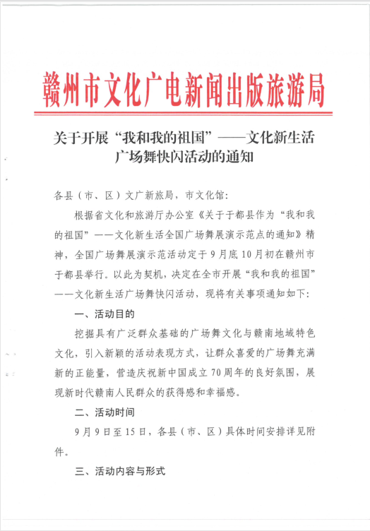 关于开展“我和我的祖国”——文化新生活广场舞快闪活动的通知