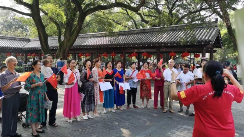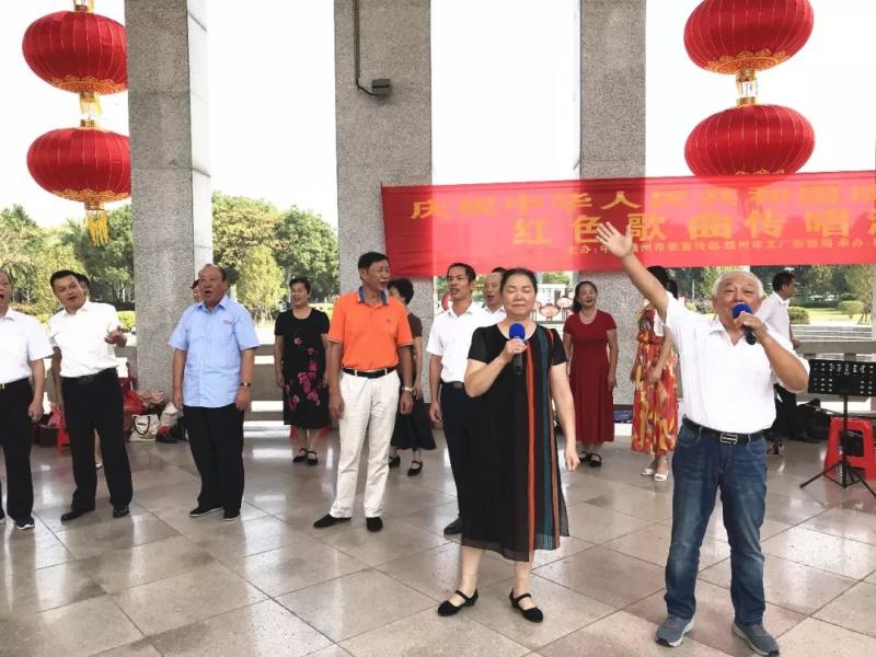 当天,赣州市文化馆虔州合唱团和红梅合唱团、赣州汽运艺术团、赣州市老科协合唱团通过独唱、小组唱、大合唱等多种形式,演唱了《我的祖国》《我爱你中国》《没有共产党就没有新中国》《祖国啊,我永远热爱你》《我和我的祖国》《今天是你的生日》《长征组歌》等经典红色歌曲,吸引众多过往市民参与,现场气氛热烈、高潮迭起。