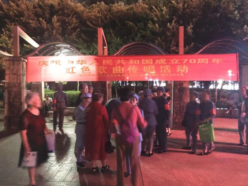 为进一步搞好中心城区红色文化群众活动,增添中心城区红色文化元素,传承红色基因,由市委宣传部、市文广新旅局主办,赣州市文化馆承办的在中心城区组织开展“唱响红色经典 弘扬红色文化”系列群众文化活动之“红色歌曲传唱”活动,将于10月2日至7日在赣州市中心城区人员较为集中的公园、广场等处开展。