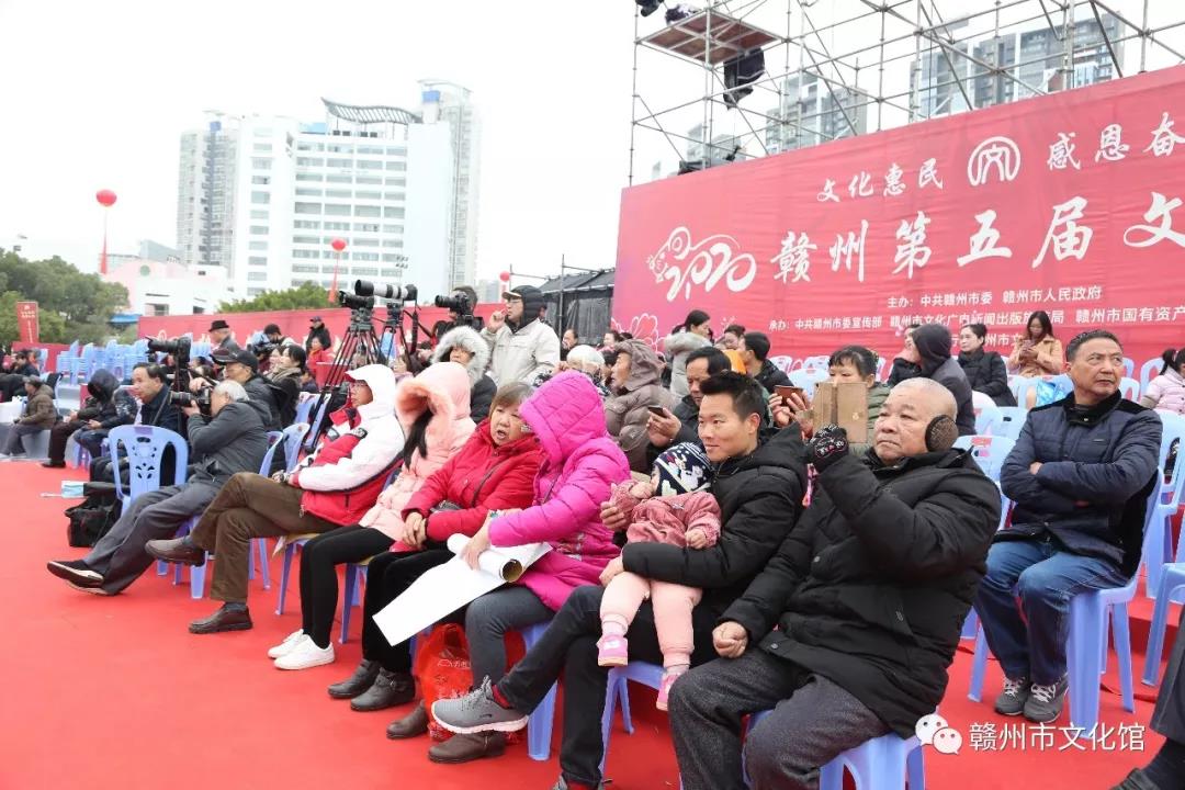 1月12日上午,“文化惠民 感恩奋进”2020赣州第五届文化惠民周活动之“红色歌曲大家唱”优秀节目展演在赣州市黄金广场举行,来自各县(市、区)文化馆选送16首经典红色歌曲同台放歌,共同唱响对祖国的热爱。