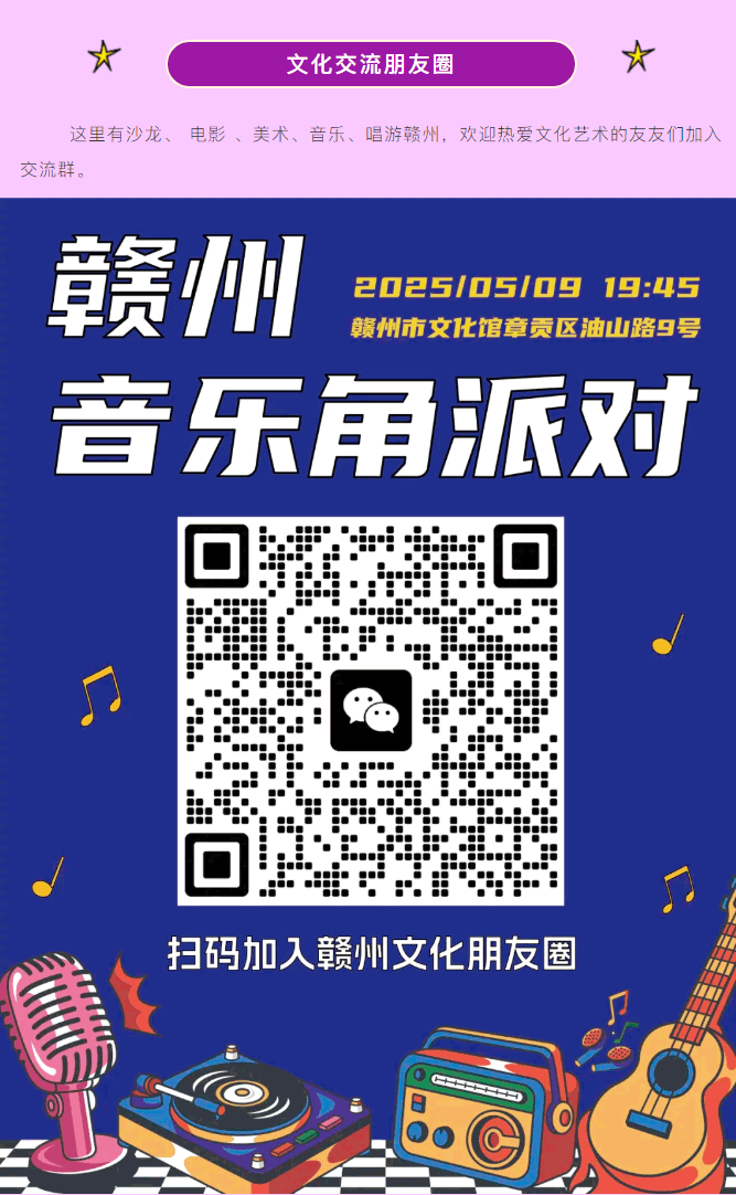 ※ 特别声明:本公众号仅用于赣州市文化馆公共文化服务及群众文化艺术普及,不用于任何商业用途。所转载文章及图片、视频、音频等版权均属原作者。如有侵权,请及时与本公众号联系。
