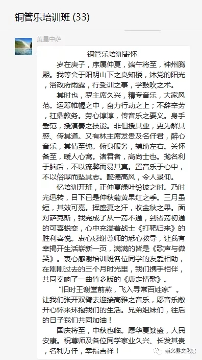 为充分发挥崇义县文化馆公益服务职能,进一步推进文化馆免费开放工作。深入实施文化惠民工程,丰富广大群众的精神文化生活,提升基层文化队伍的水平,促进崇义县群众文化事业的蓬勃发展。崇义县文化馆2020免费开放“铜管乐培训班”6月18日开班,经过为期三个月的培训,取得了显著的教学成果,各学员演奏水平均有较明显提升。