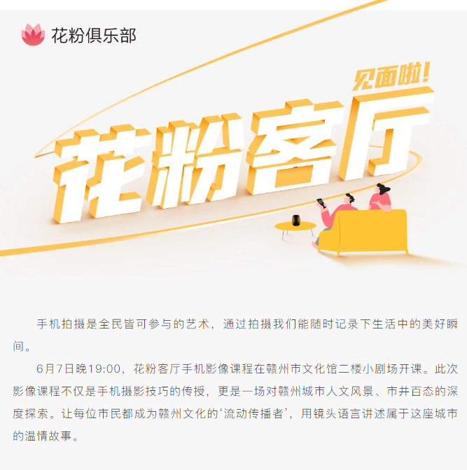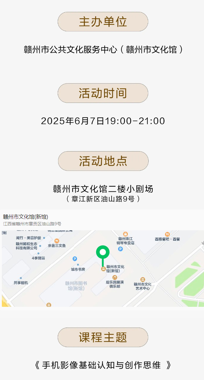 ※ 特别声明:本公众号仅用于赣州市文化馆公共文化服务及群众文化艺术普及,不用于任何商业用途。所转载文章及图片、视频、音频等版权均属原作者。如有侵权,请及时与本公众号联系。