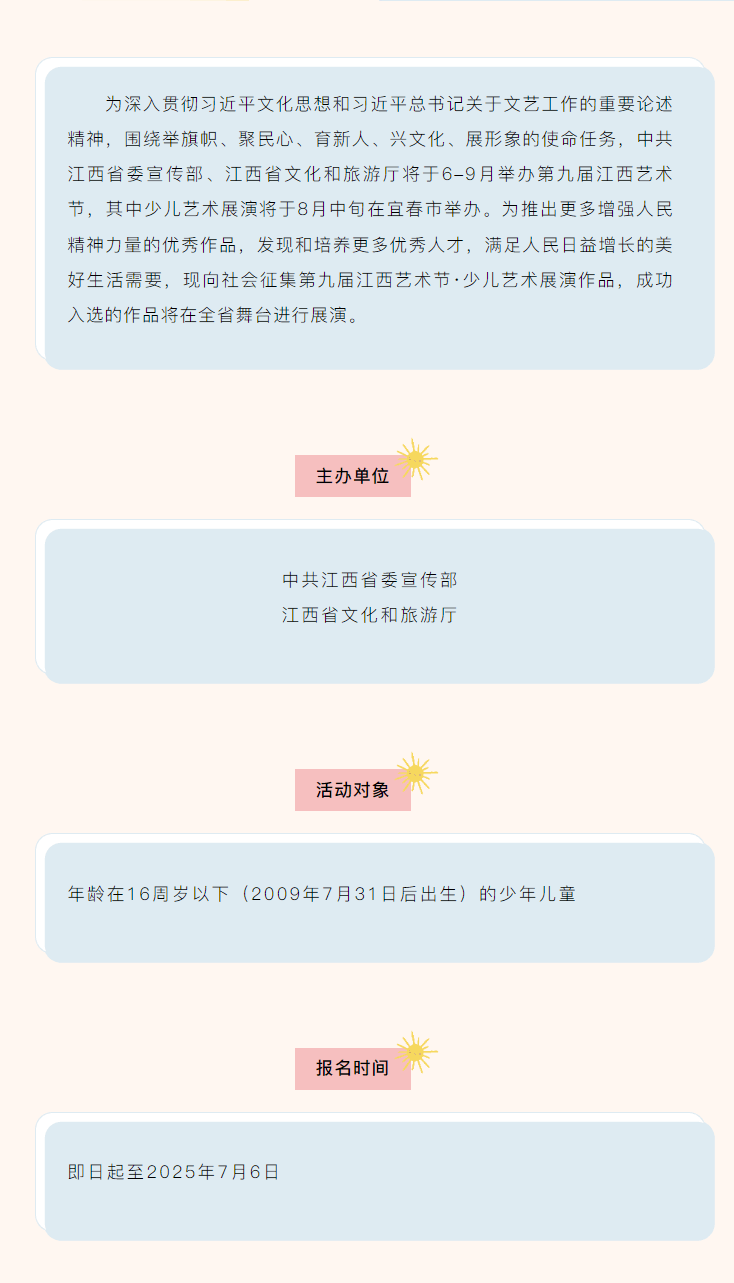 活动报名 | 第九届江西艺术节·少儿艺术展演报名开始啦
