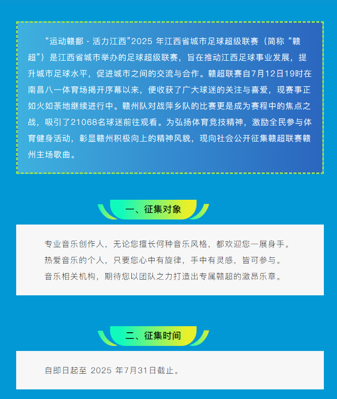 作品征集 | 赣超联赛赣州主场歌曲征集火热进行中!