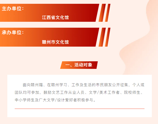 ※ 特别声明:本公众号仅用于赣州市文化馆公共文化服务及群众文化艺术普及,不用于任何商业用途。所转载文章及图片、视频、音频等版权均属原作者。如有侵权,请及时与本公众号联系。
