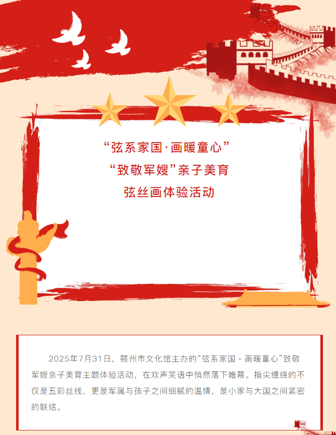 当前位置: 首页 > 文化动态 > 活动回顾 | “弦系家国画暖童心”——“致敬军嫂”亲子美育弦丝画体验活动
