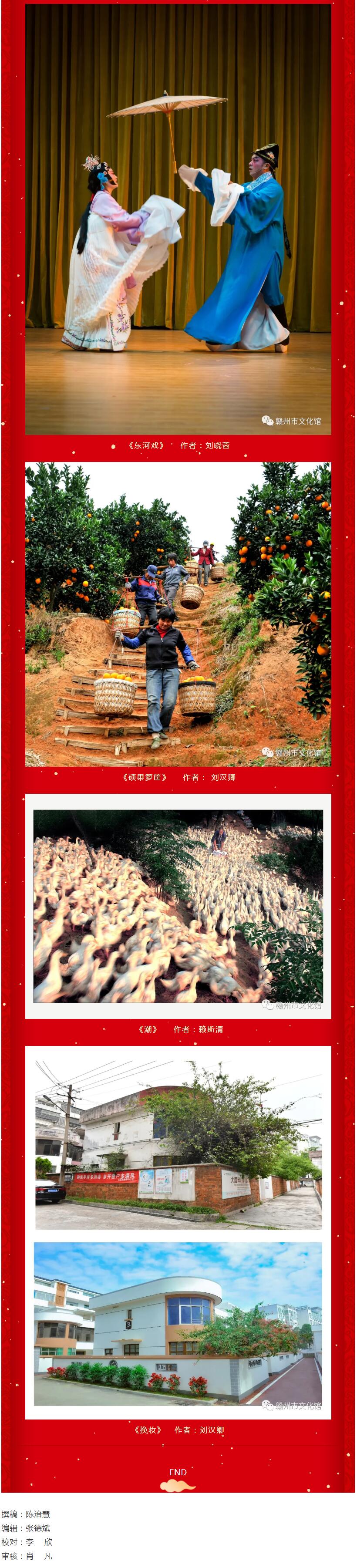 现从中择优整理编辑,美术、书法作品以“百年辉煌 继往开来”为主,摄影作品侧重于“民俗光影 幸福赣州”方面,文学类作品以“我的春节故事”为重点,通过赣南文化云网站、赣州市文化馆微信公众号进行“云展示”。我们站在“两个一百年”奋斗目标的历史交汇点上,观赏这一幅幅、一篇篇、一段段作品时,感悟到人民群众对祖国和家乡振兴发展的赞美之情,更加深刻感受到中国共产党的百年历程和伟大业绩,百年大党的梦想与追求、情怀与担当,从而勠力同心开启新时代的新征程!