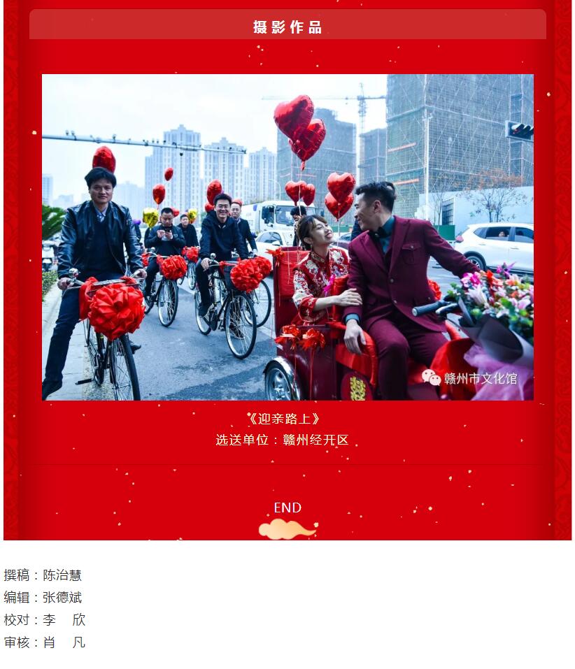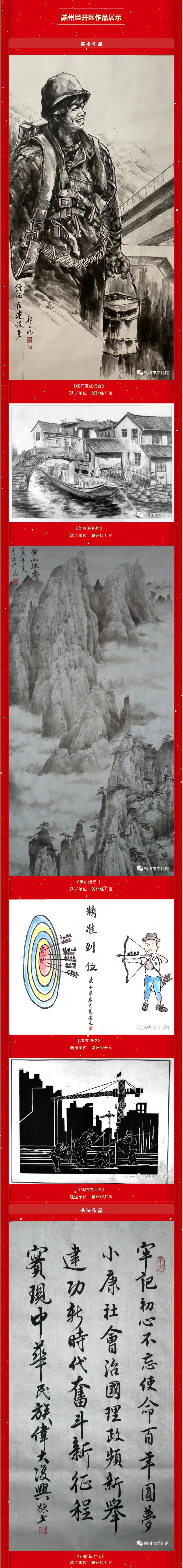 现从中择优整理编辑,美术、书法作品以“百年辉煌 继往开来”为主,摄影作品侧重于“民俗光影 幸福赣州”方面,文学类作品以“我的春节故事”为重点,通过赣南文化云网站、赣州市文化馆微信公众号进行“云展示”。我们站在“两个一百年”奋斗目标的历史交汇点上,观赏这一幅幅、一篇篇、一段段作品时,感悟到人民群众对祖国和家乡振兴发展的赞美之情,更加深刻感受到中国共产党的百年历程和伟大业绩,百年大党的梦想与追求、情怀与担当,从而勠力同心开启新时代的新征程!