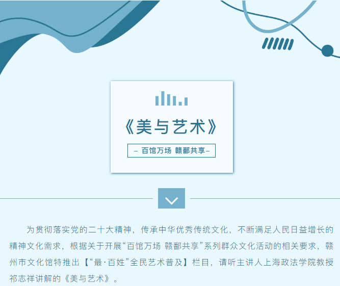 ※ 特别声明:本公众号仅用于赣州市文化馆公共文化服务及群众文化艺术普及,不用于任何商业用途。所转载文章及图片、视频、音频等版权均属原作者。如有侵权,请及时与本公众号联系。