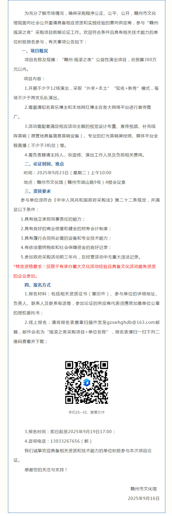 关于公开邀请“赣州·摇滚之夜”项目意向供应商实地勘察及论证的公告