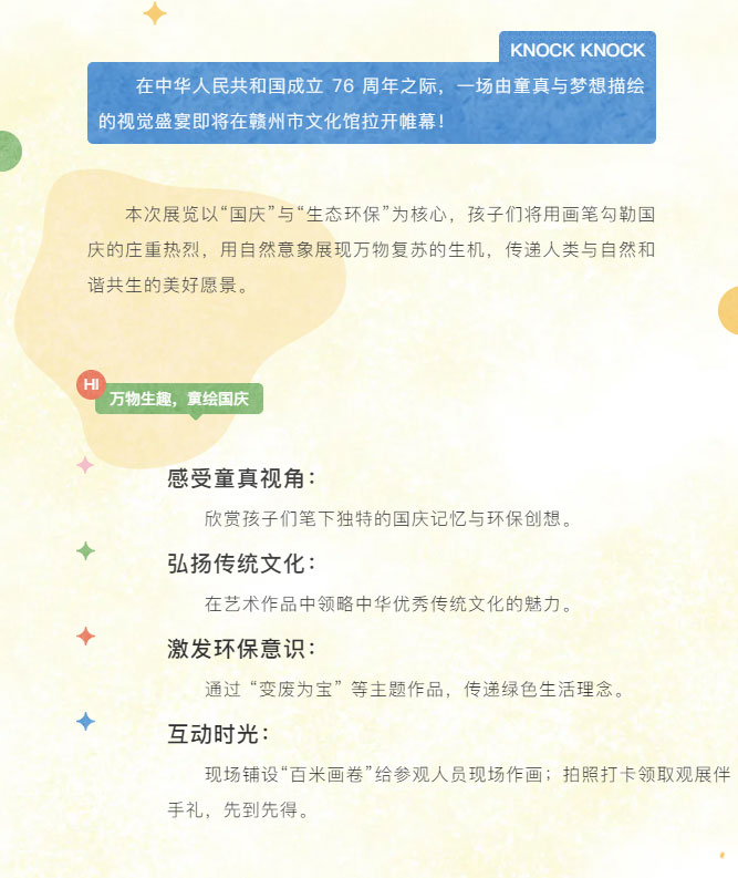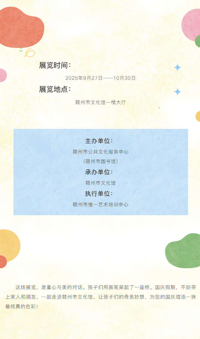 当前位置: 首页 > 文化动态 > 展览预告 | “万物生趣 童绘国庆”——国庆儿童书画作品展即将启幕!