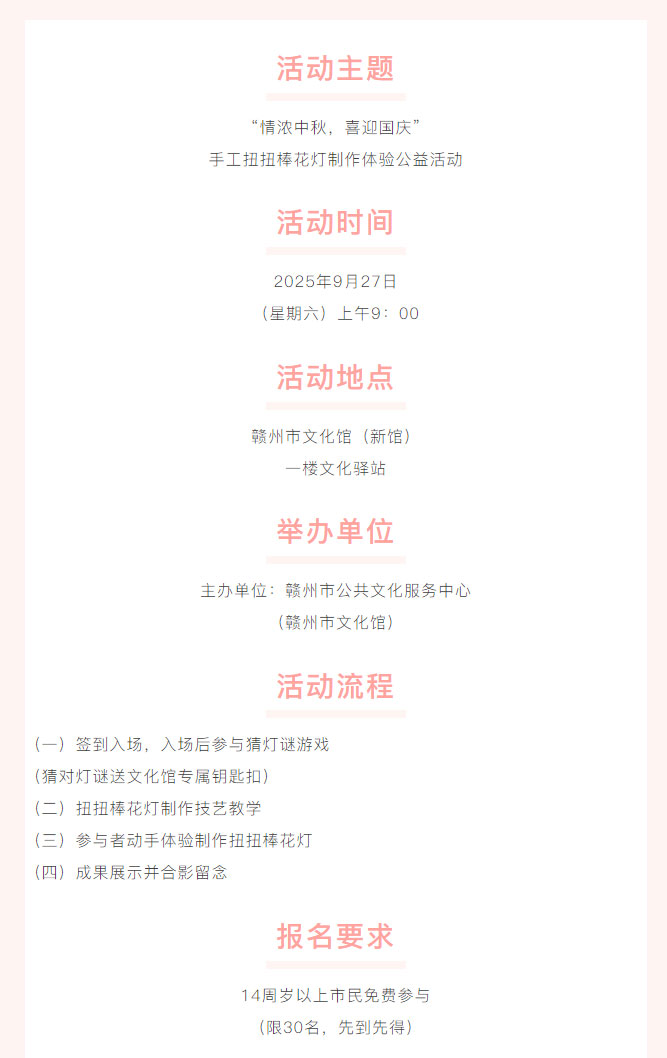 活动预告 | “情浓中秋,喜迎国庆”——手工扭扭棒花灯制作体验公益活动