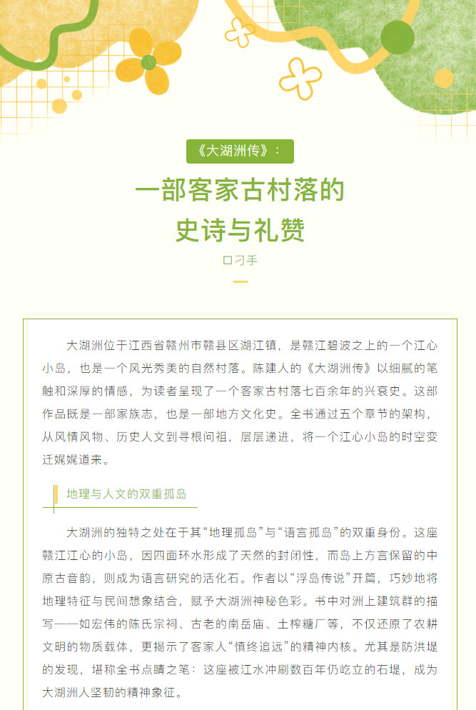 群文者说 | 《大湖洲传》:一部客家古村落的史诗与礼赞
