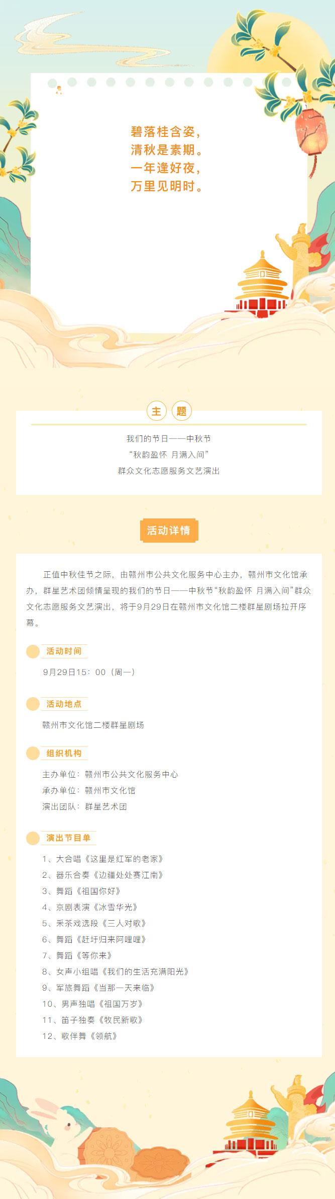 我们的节日——中秋节 “秋韵盈怀 月满入间”群众文化志愿服务文艺演出预告