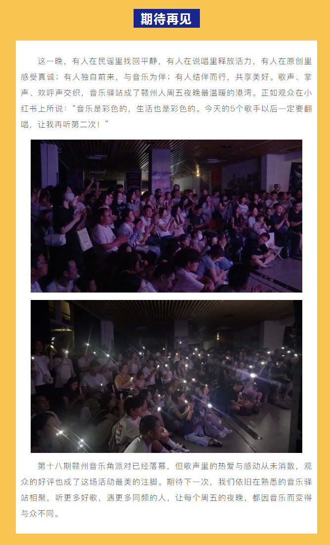 当前位置: 首页 > 文化动态 > 赣文轻骑兵 | 第十八期赣州音乐角派对落幕:歌声治愈人心,观众热赞不停