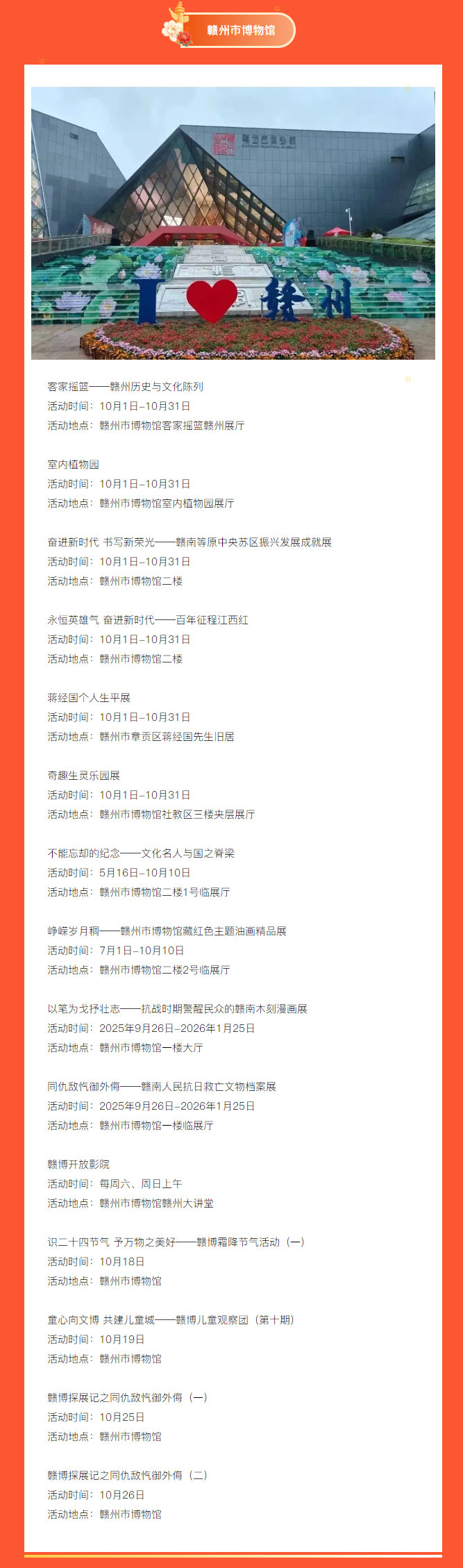 ※ 特别声明:本公众号仅用于赣州市文化馆公共文化服务及群众文化艺术普及,不用于任何商业用途。所转载文章及图片、视频、音频等版权均属原作者。如有侵权,请及时与本公众号联系。
