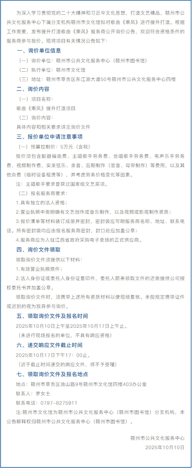 ※ 特别声明:本公众号仅用于赣州市文化馆公共文化服务及群众文化艺术普及,不用于任何商业用途。所转载文章及图片、视频、音频等版权均属原作者。如有侵权,请及时与本公众号联系。